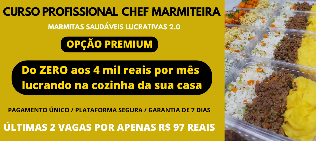Novidade! Transforme as suas marmitas em uma verdadeira obra de arte lucrativa e triplique as suas vendas. Apenas 2 vagas disponíveis.