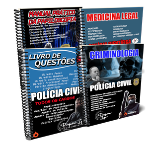 (MEGA COMBO ) 04 APOSTILAS PAPILOSCOPIA,MEDICINA LEGAL, CRIMINOLOGIA E LIVRO DE QUESTÕES