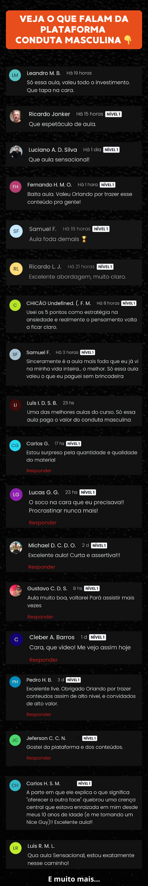 | LIMITE DE 20 VAGAS | Processo exclusivo, individual, personalizado e profundo para homens que querem reorganizar a própria vida com presença, clareza e força. Incluindo diagnóstico, confrontação de padrões, realinhamento de conduta e plano de ação.