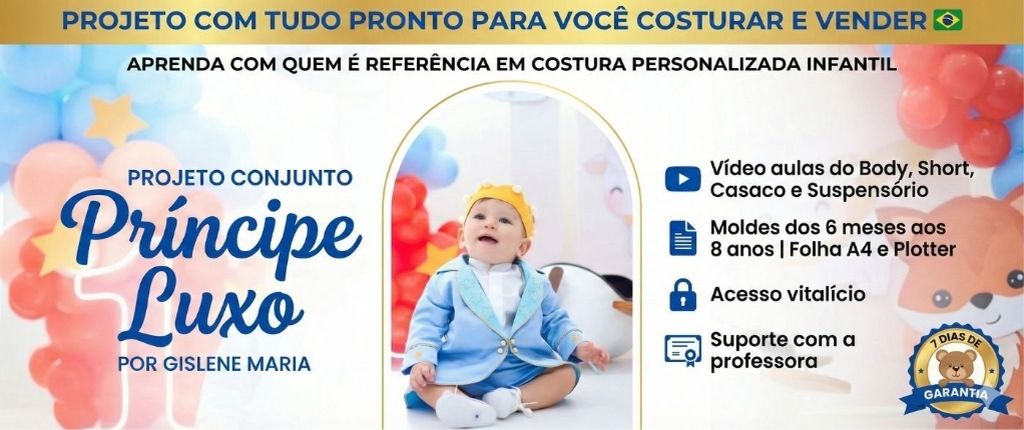 Tenha acesso vitalĂcio ao Projeto Conjunto Principe Luxo com tudo pronto para vocĂŞ costurar e vender mesmo sendo iniciante. (Libere seu acesso agora com mais de 70% de DESCONTO - de R$347 por apenas R$97)