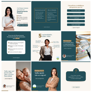 O Pack para Recursos Humanos conta com mais de 100 templates profissionais e editáveis. ✅ 50 templates para feed; ✅ 20 templates para stories; ✅ 25 capas para destaques; ✅ 8 templates carrossel; ✅ 04 modelos de cartão de visitas virtual.