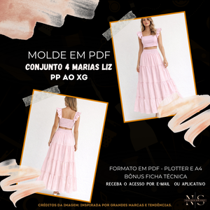 🧵[Molde em PDF] - Conjunto 4 Marias Liz ID 4160685 [PP ao XG]✨