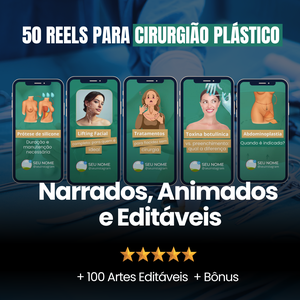 50 Reels Narrados, Animados e Editáveis para Cirurgião Plástico