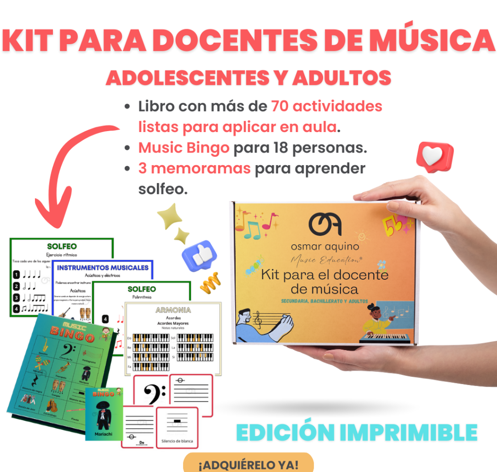 ¡Complementa tu kit con un libro para trabajar temas iniciales y básicos como cualidades del sonido, orígenes del sonido, creatividad e instrumentos musicales!