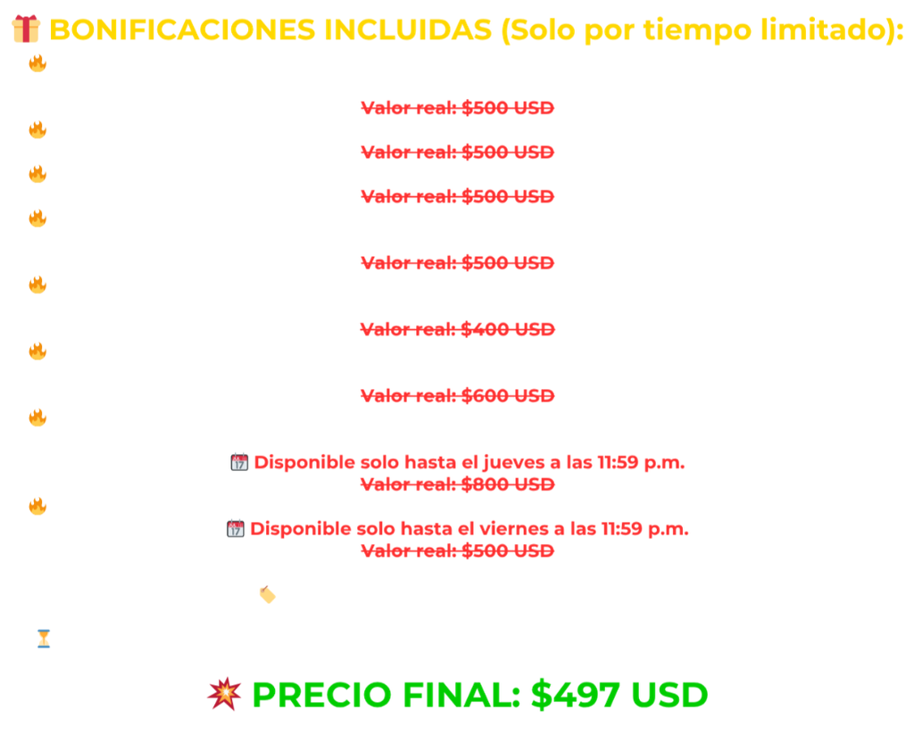 🔥 Pack de Abundancia Total 🔥 Llévate 5 libros esenciales para desbloquear tu mentalidad y multiplicar tus ingresos: 📖 Desbloquea tu mente, libera tu riqueza 📖 Código de Abundancia 📖 PNL para Novatos 📖 Los 365 Días del Poder 📖 Emprende con IA 🚀 Oferta exclusiva: Añádelo con un solo clic y accede de inmediato. ¡Tu transformación comienza