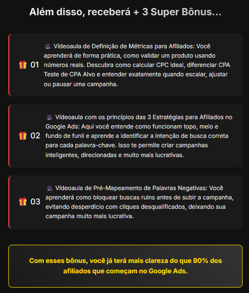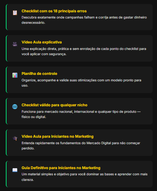 Aprenda na prática como configurar campanhas que realmente vendem todos os dias. Aqui você terá aulas diretas ao ponto com tudo que um afiliado precisa para dominar a Rede de Pesquisa e transformar cliques em vendas.
