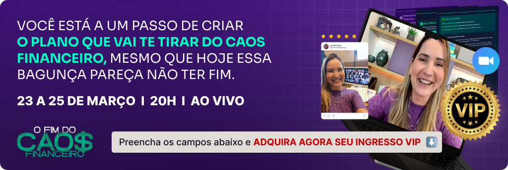 Acesso VIP da Imersão O Fim do Caos Financeiro com Gravação por 15 dias + Encontro Exclusivo de Tira Dúvidas + Resumos das Aulas