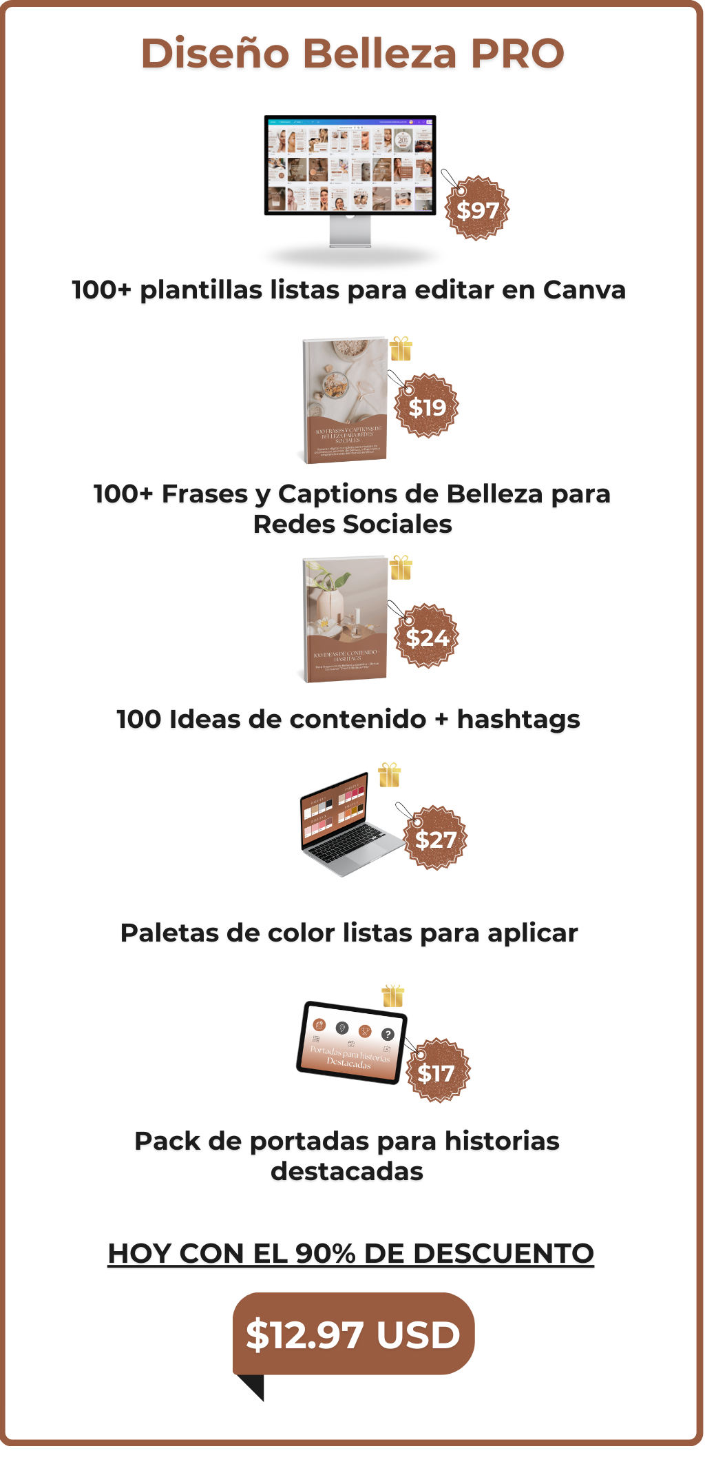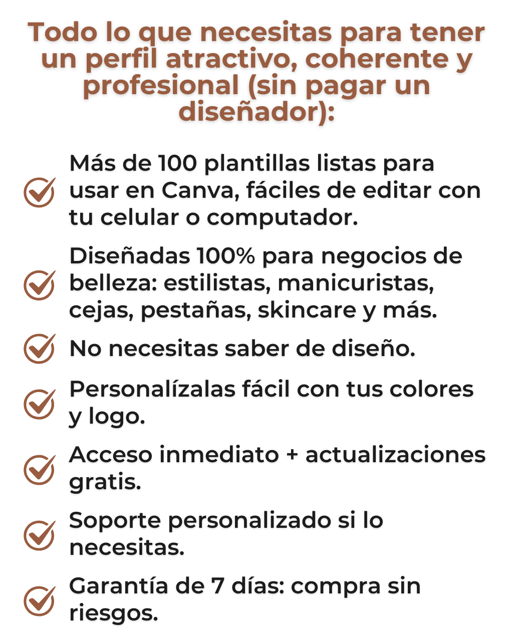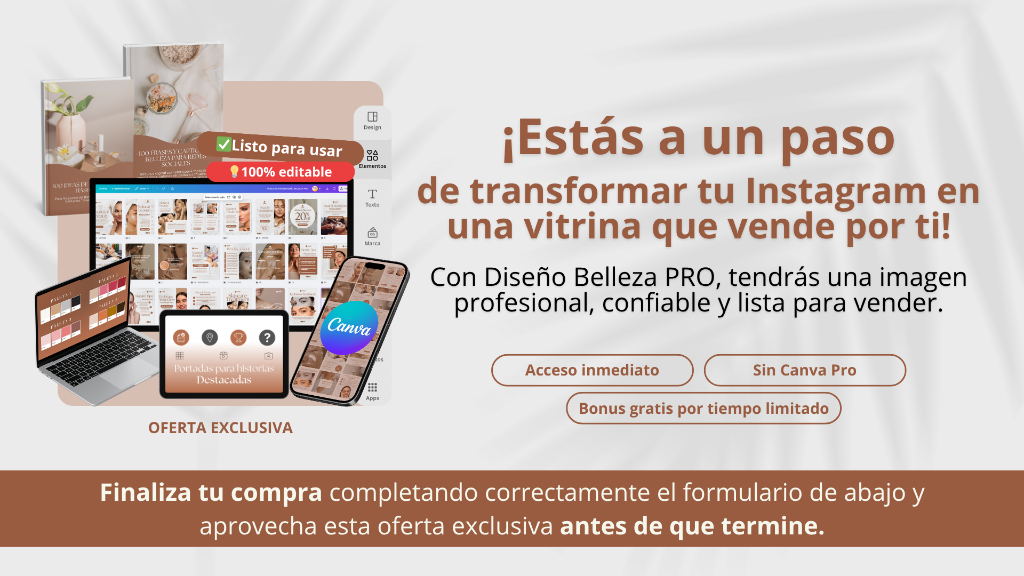 Agrega este servicio y en solo 3 días hábiles recibirás todas las plantillas de Diseño Belleza PRO adaptadas a tus colores y logo. Tú nos compartes tu identidad visual, y nosotros nos encargamos del resto. 👉 Ideal si quieres una imagen única, coherente y 100% profesional, sin perder tiempo editando.