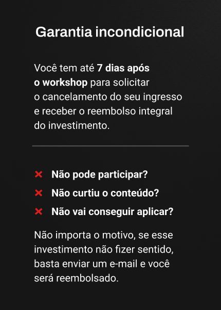 ▪️ Acesso às gravações do Visionários Day editadas em formato de aulas. ▪️ Liberação em até 7 dias após o evento. ▪️ Seu investimento vira cashback duplo. ▪️ Acesso aos agentes por 30 dias (liberação após o evento ao vivo).