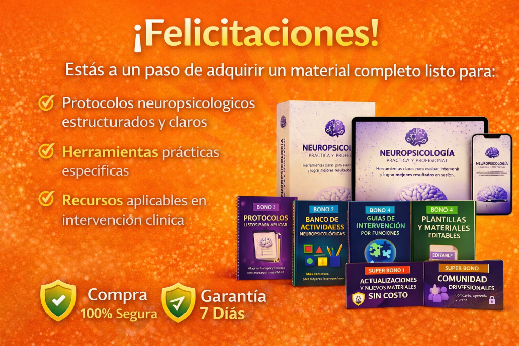 Planifique intervenciones cognitivas con mayor facilidad. 📂 La biblioteca incluye ejercicios para: 🔹 atención 🔹 memoria 🔹 funciones ejecutivas 🔹 control cognitivo 🧩 Actividades organizadas por edad para usar en sesión o como tarea terapéutica.