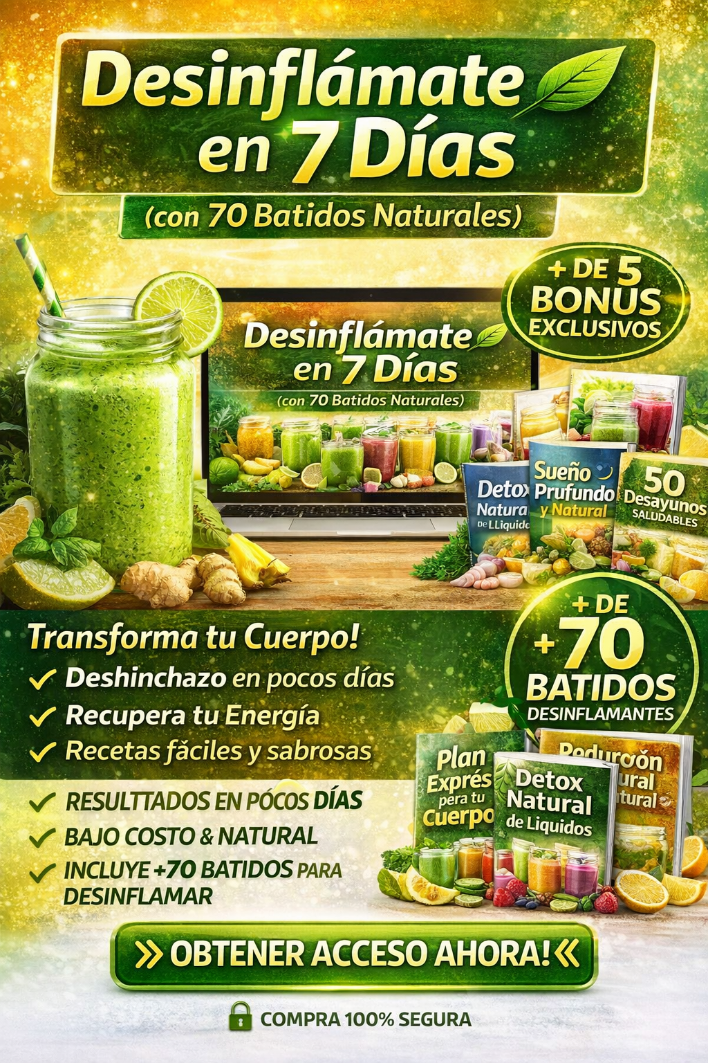 Desinflámate en 7 Días (con 70 Batidos Naturales)