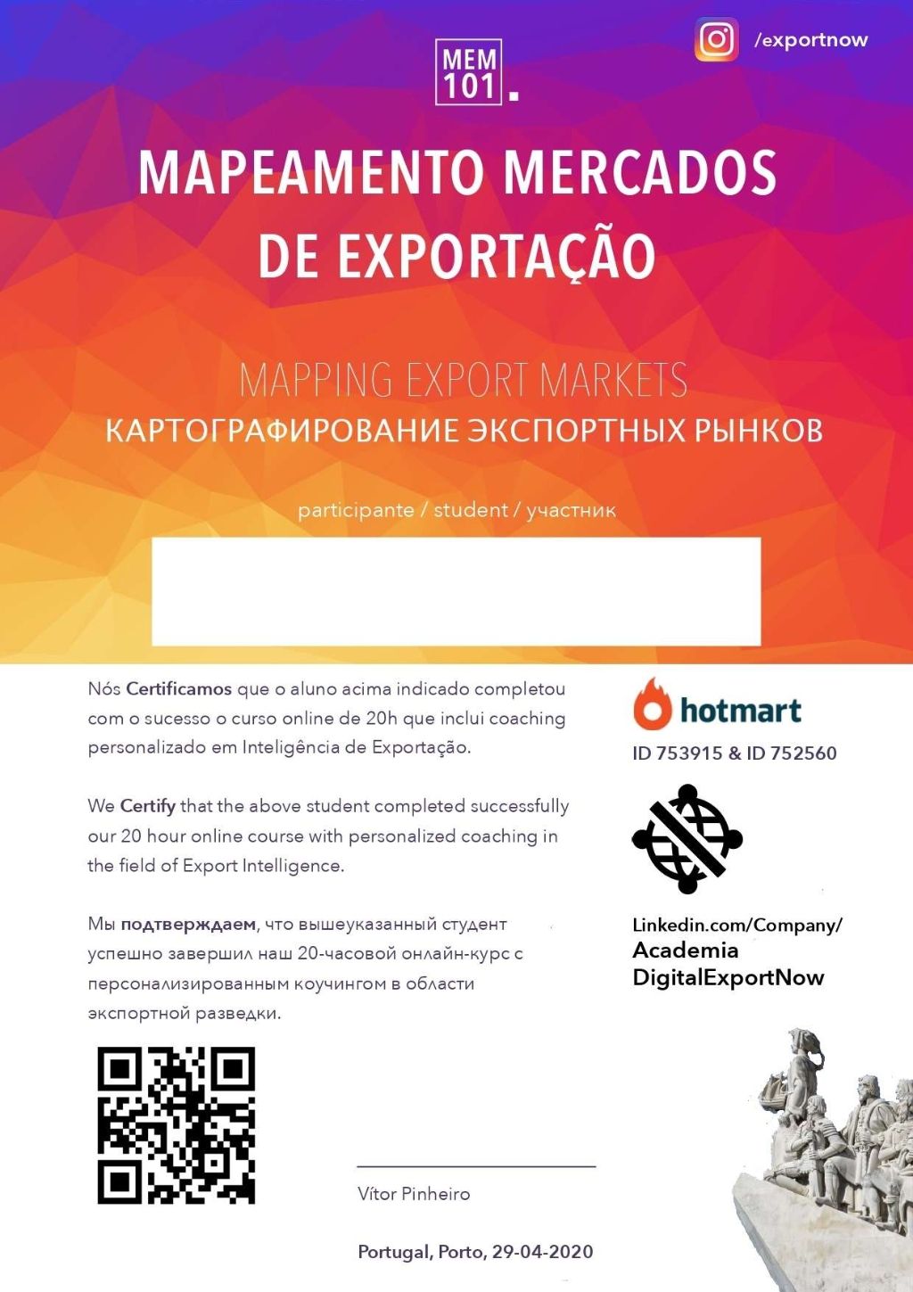 English Online Course, ideally for export managers that use English as their business language, business owners and start-ups from Ex-URSS countries interested in expanding international business in Europe and Portuguese Speaking. Simple, practical and useful, it offers additional 3 online coaching sessions to help you or your company team to develop your own international business strategy. The online course teaches sales techniques that allows business managers to focus on real opportunities, manage obstacles and understand the new reality after Covid-19 where Business is going to be more digital and at the same time more personal.