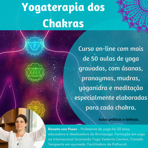 Curso on-line com mais de 50 aulas práticas de yoga, divididas por chakras. Aulas com ásanas, pranyamas, yoganidra e meditação para cada chakra. Mais de 12 aulas teóricas para aprofundar sua prática. Aula teste gratuita.