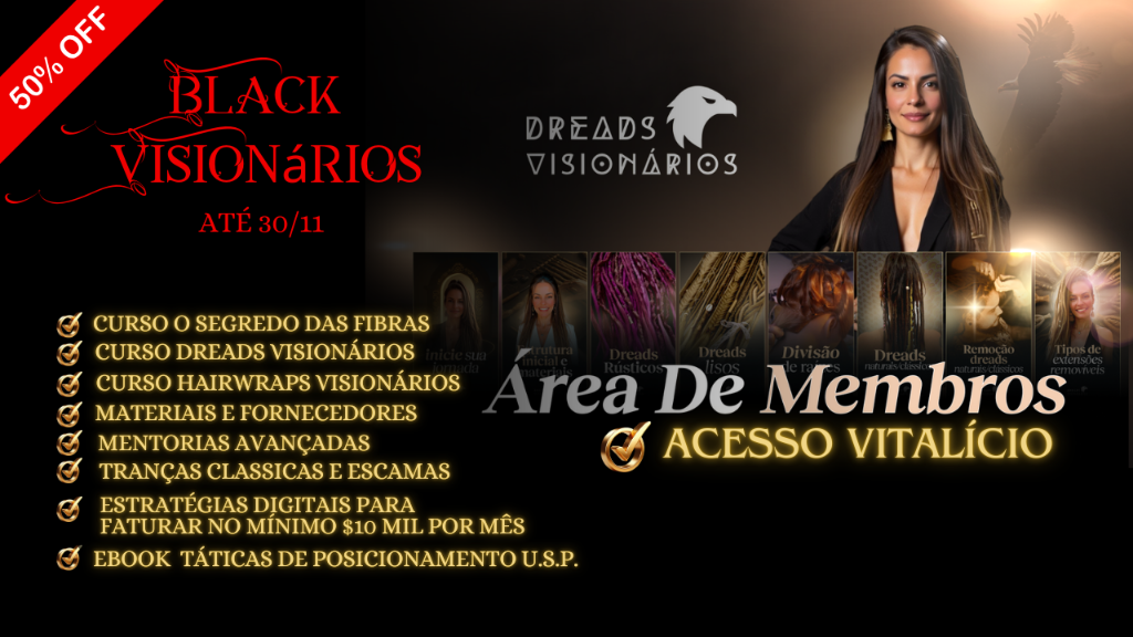 Nossa missão é te tornar uma águia que enxerga longe, vendo o que muitos ainda não veem e se vier comigo nesta jornada você também verá as infinitas possibilidades desta incrível arte e se tornará um criador de DREADS VISIONÁRIOS!