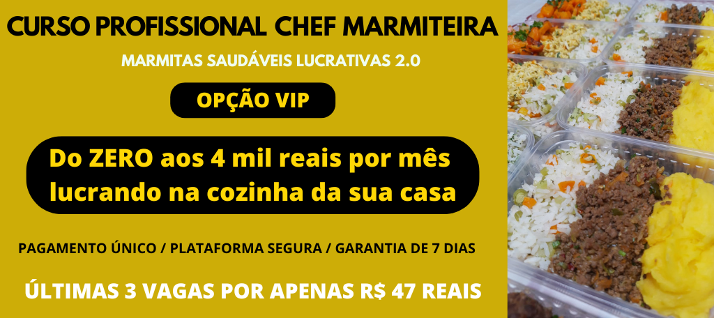 Transforme as suas marmitas em uma verdadeira obra de lucrativa e triplique o seu faturamento. Apenas 2 vagas disponíveis.