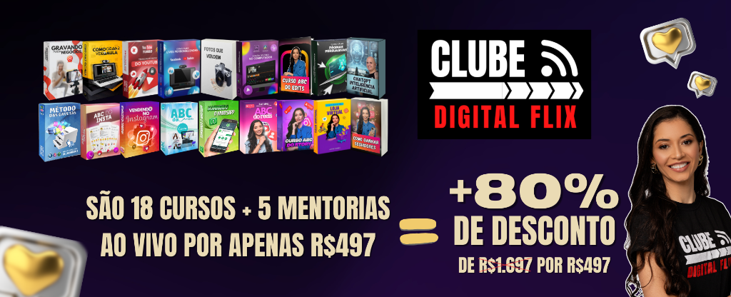 Clube Digital Flix (18 cursos) + ACESSO VITALÍCIO + 5 Mentorias + Grupo no Whatsapp