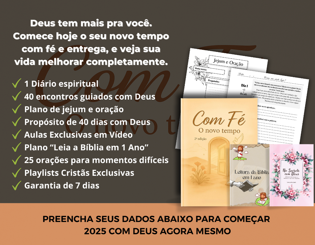 “Aliança Sagrada” – Um Diário de propósito de 40 dias para restaurar sua vida amorosa com Deus. São 40 dias de orações, reflexões e atividades que fortalecem sua fé, amor-próprio e abrem seu coração para viver um relacionamento curado, leve e abençoado por Deus. Você recebe na hora pelo seu e-mail para começar quando quiser.