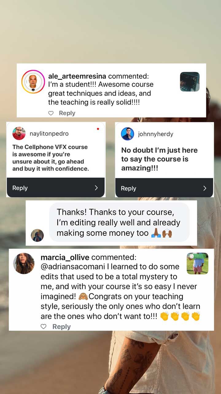 97% of Cell Phone VFX course buyers also got the Visual Effects Pack. Ready-made visual effects are a valuable tool for content creators, offering a fast and effective way to instantly enhance your edits. This pack will seriously level up the quality of your videos. Included effects: Light Leaks Pack Explosion Pack Energy Pack Smoke VFX
