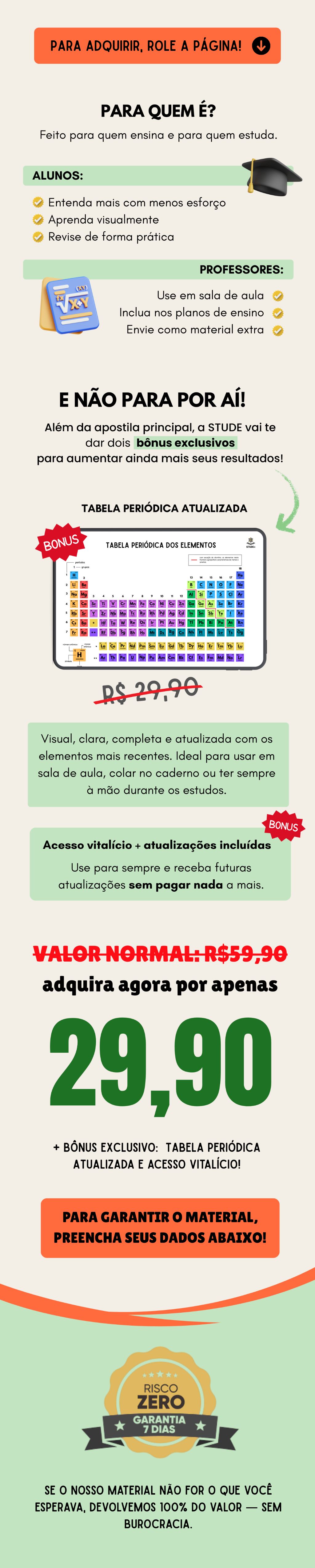 Adicione o Manual dos Elementos Químicos por apenas 39,90! Um guia visual e prático com os principais elementos da Tabela Periódica. Ideal para consultas rápidas, revisão e apoio em atividades. ✅ Informações organizadas e de fácil leitura ✅ Dicas para interpretação e memorização ✅ Perfeito para alunos e professores do Ensino Médio ⚡ Uma ferramenta extra que facilita o ensino e o estudo da Química!