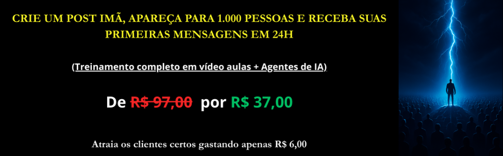 Você vai criar o post certo. Vai impulsionar do jeito certo. Mas se sua BIO continuar genérica… o cliente vai clicar — e sair. Esse é o erro que te faz perder dinheiro com anúncio. O Agente de Posicionamento Magnético resolve isso. Em menos de 15 minutos, sua bio vira vitrine de especialista. Quem chega vai entender o que você faz, o problema que você resolve e por que deveria te escolher. Adiciona agora por apenas R$ 19,00.
