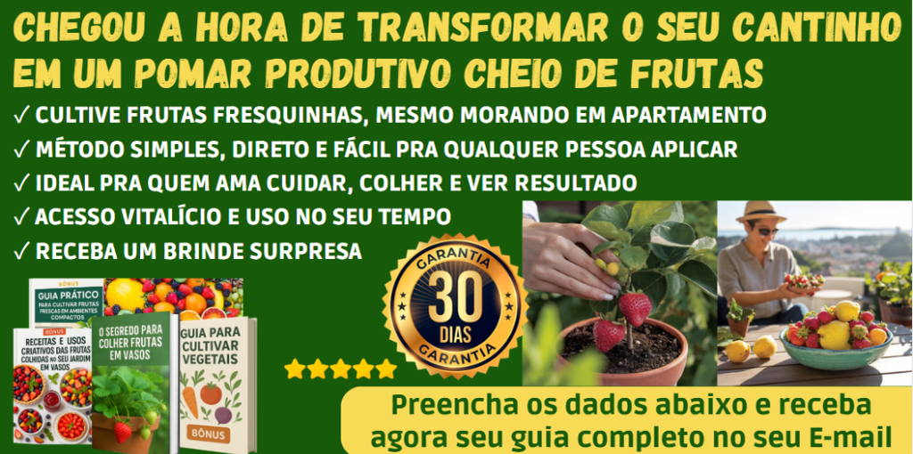 "Achei que seria complicado, mas o guia é bem direto e fácil de seguir. Já montei meu pomarzinho na varanda e está tudo florescendo. Recomendo pra quem quer mais saúde e prazer no dia a dia."