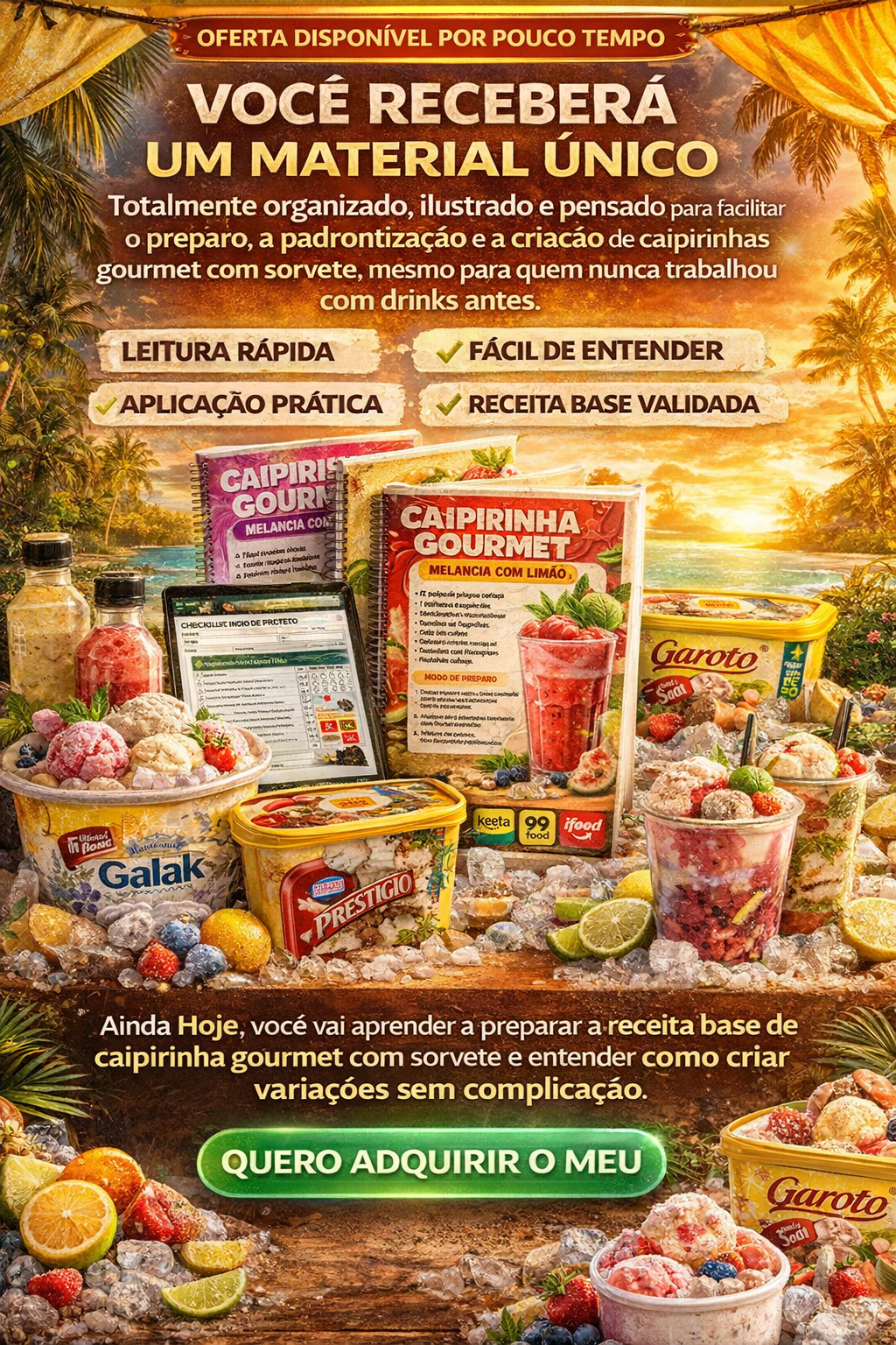 130 Receitas de Caipirinha Gourmet Com Sorvete Lucrativa para Faturar até 3.000,00 por Final de Semana de Casa