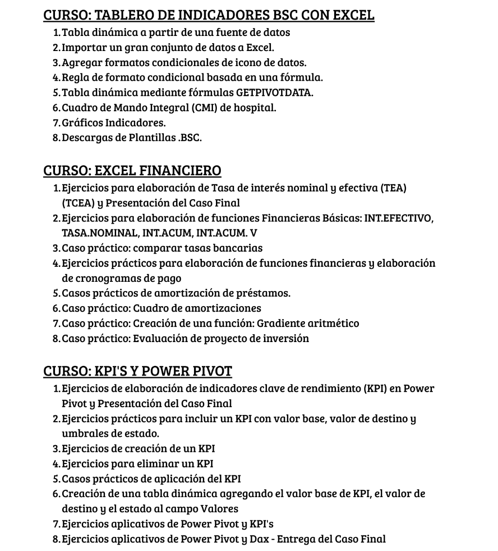 Diseñado para administradores, contadores, analistas financieros, jefes de producción y todo profesional que gestione bases de datos y requiera transformar cifras en indicadores de gestión (KPIs) para la toma de decisiones.