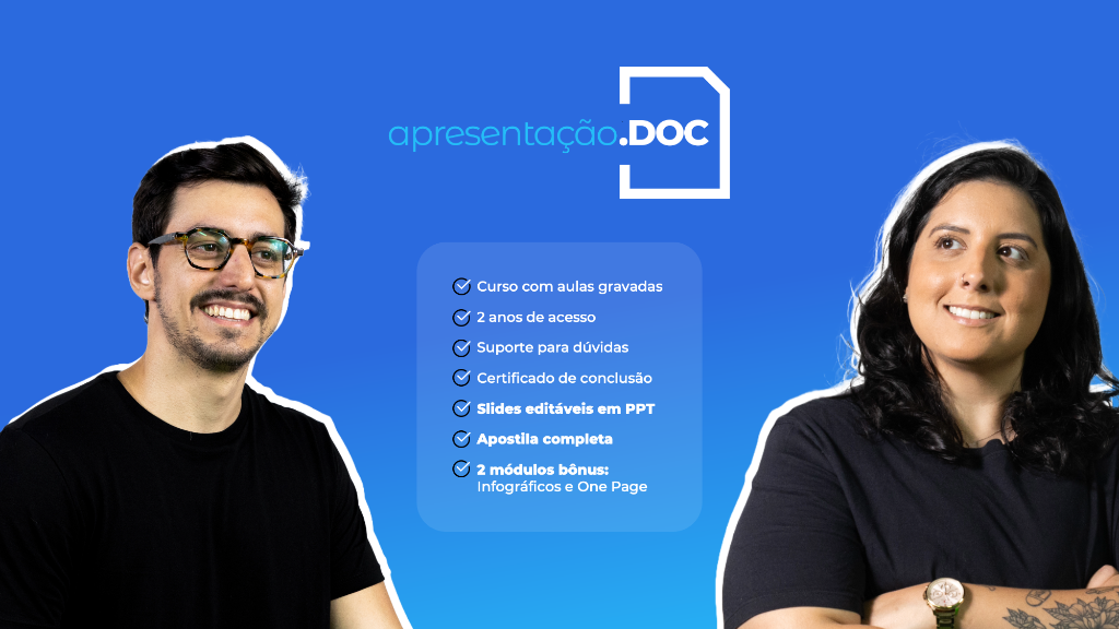 Adicione agora o pacote de Slides Editáveis, com designs sem firulas, modernos e super fáceis de personalizar. Assim você ganha tempo, coloca em prática o que aprendeu e faz bonito na frente do seu chefe - tudo isso por apenas 47 reais!