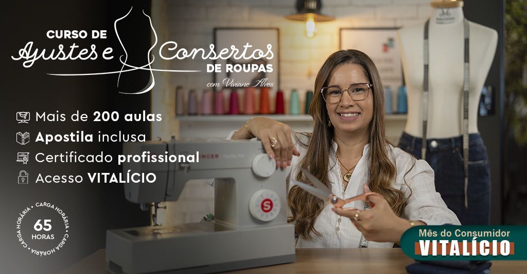 OFERTA EXCLUSIVA: Curso Costura para Iniciantes com Viviane Alves (De R$ 997,00 por apenas R$ 347,00 à vista). Economize R$ 650,00 à vista comprando junto mais esse curso da Maximus Tecidos. ATENÇÃO: Essa oferta estará disponível somente uma única vez nesta página.