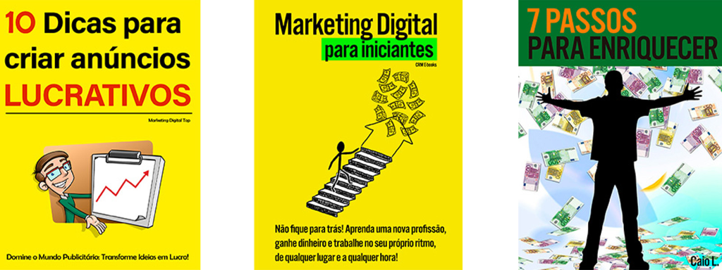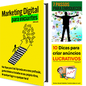 3 e-books - "Marketing Digital para iniciantes" + 2 bônus: "7 Passos para Enriquecer" e "10 Dicas para Criar Anúncios Lucrativos"