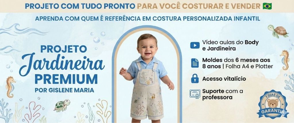 Tenha acesso vitalício ao Projeto Jardineira Premium com tudo pronto para você costurar e vender mesmo sendo iniciante. (Libere seu acesso agora com mais de 70% de DESCONTO - de R$347 por apenas R$97)