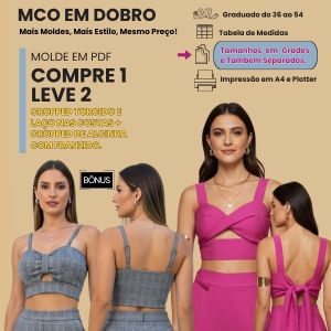 MCO em Dobro: Compre 1 e Leve 2 - Molde Cropped Torcido e Laço nas Costas + Bônus: Molde Cropped de Alcinha com Franzido