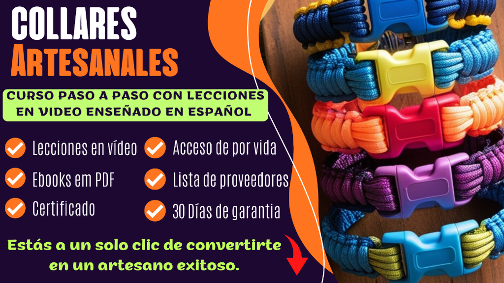 ✨ ¡Completa tu aprendizaje ahora mismo! ¿Qué tal aprender también a hacer Pulseras de Macramé? Son rápidas de producir, de bajo costo y se venden muy bien como accesorios que acompañan tus Collares Artesanales. Con pocas técnicas sencillas, transformas hilos en piezas modernas que encantan a los clientes y aumentan tus ventas. 👉 Aprovecha esta oferta exclusiva para quienes ya están adquiriendo el curso de Collares y añade ahora el curso en video de Pulseras de Macramé con un descuento especial