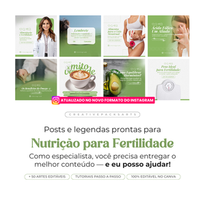 Leve junto também o Pack completo para Nutrição para Gestantes com 50 artes 100% editáveis + Legendas Prontas [ Na mesma IDENTIDADE VISUAL do Nutrição para Fertilidade ].