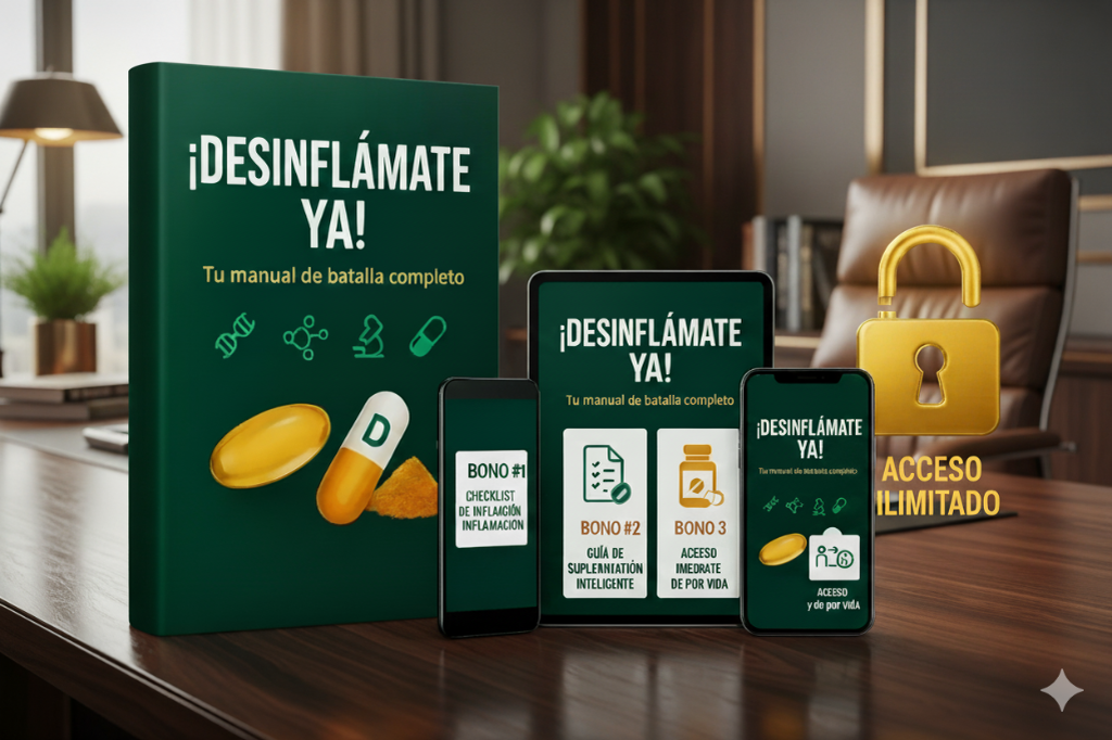 Añade 150 Recetas Antiinflamatorias por solo $4.90: planes diarios que reducen inflamación, mejoran digestión y potencian tu energía (solo aquí). 👉 Complementa tu ebook “¡Desinflámate Ya!” con 150 Recetas Antiinflamatorias: desayunos, almuerzos y cenas listos para transformar tu energía, controlar la inflamación y mejorar tu bienestar día a día. Acelera tus resultados con esta herramienta práctica y deliciosa. Precio exclusivo aquí en la página de pago: solo $4.90 USD.