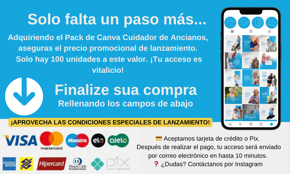 Adquiere ahora el paquete exclusivo de pies de foto listos para las publicaciones del Pack de Canva para Cuidador de Ancianos y lleva tu contenido al siguiente nivel. 📱💬📋