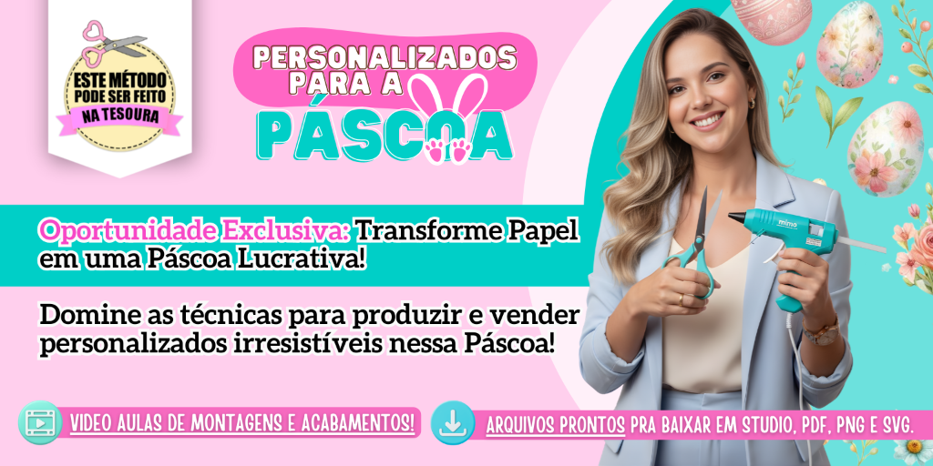 Crie personalizados incríveis para a Páscoa e transforme essa data em uma grande oportunidade de vendas! Aprenda a produzir peças temáticas com aulas práticas, moldes prontos e técnicas de acabamento