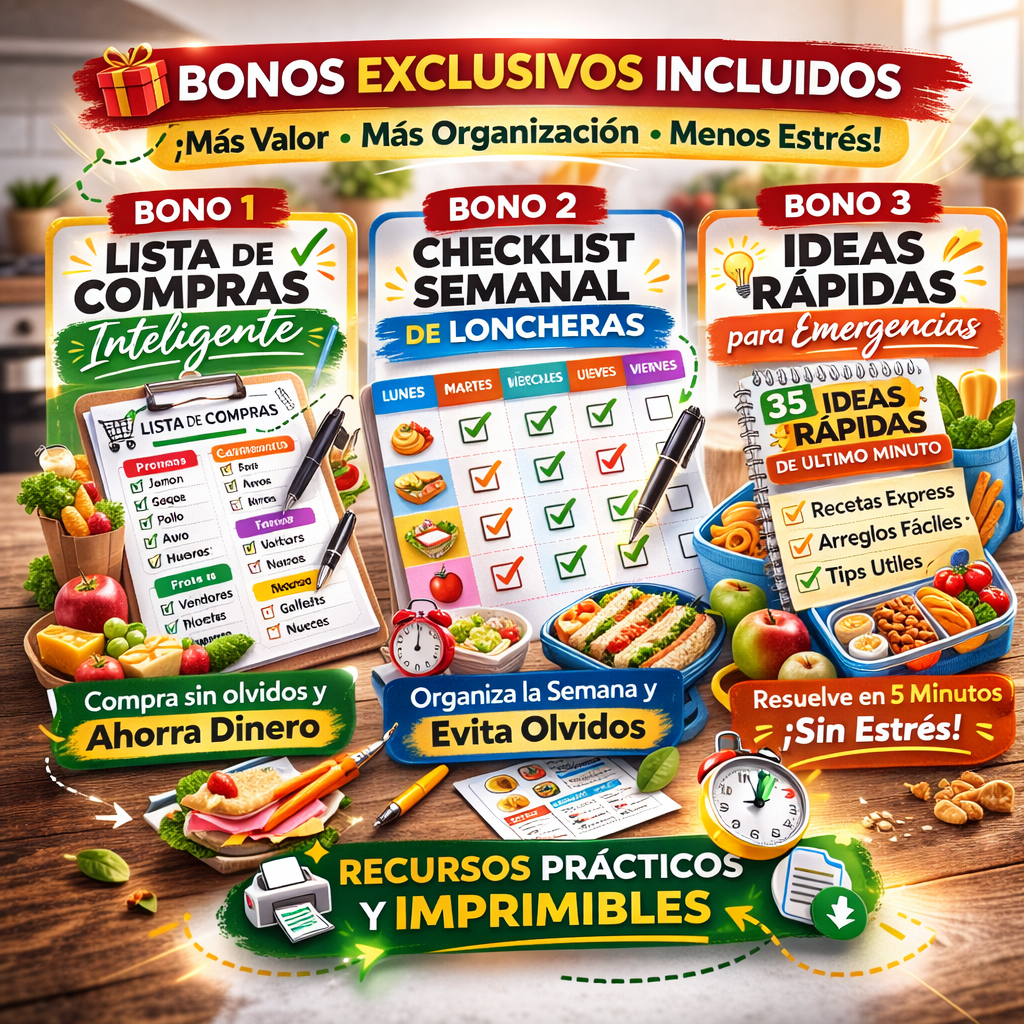 🥦 Loncheras para Niños Quisquillosos Recetas y combinaciones pensadas para niños que “no comen nada”. Ideas suaves, prácticas y probadas para reducir rechazos y evitar que la lonchera regrese intacta. Menos peleas. Más bocados. Más tranquilidad. 🍱