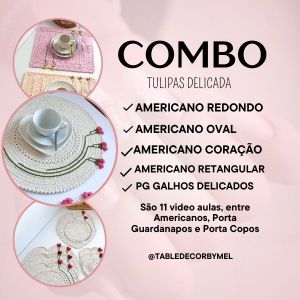 Combo Tulipas Delicadas-São 11 vídeo aulas entre americanos, porta guardanapos e porta copos.
