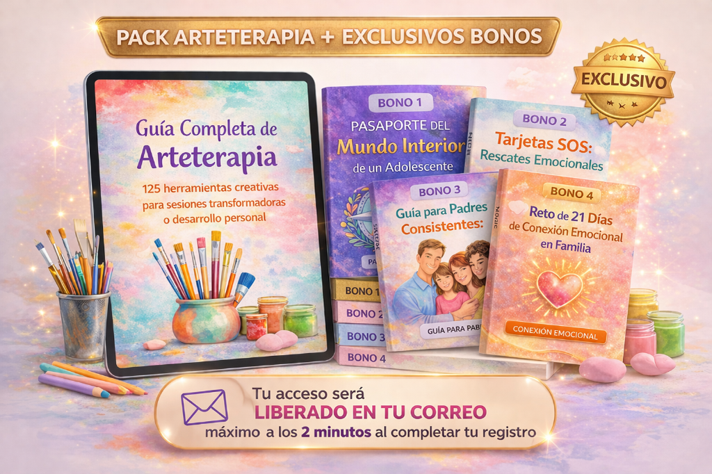 Suma +120 ACTIVIDADES EXTRA DE ARTETERAPIA 🎨 (Contenido Adicional) + Tarjetas Reguladoras 🛡️, Flashcards 🧠 y Guías de Escritura Terapéutica ✍️. Consigue el soporte emocional completo para tu proceso por una fracción de su precio original. 💎