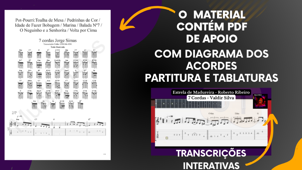 ✅Transcrições de músicas: Espelho, as Rosas não Falam, Bebeto Loteria, Estrela de Madureira, Pela Hora, A batucada dos Nossos Tantans, Preciso Me encontrar, Trem das Onze!! Entre outras !! Só essas Transcrições, já valem no mínimo 3x o investimento!