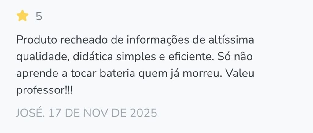 [OFERTA BLACK NOVEMBER 2025 - somente nessa página] [Material complementar de estudo] Apostila em PDF com 112 páginas com mais de 1.000 exercícios divididos num período de prática de 28 dias. Destrave suas mãos de uma vez por todas, tanto na qualidade dos toques quanto na velocidade e controle de baquetas. Material simples e eficaz!