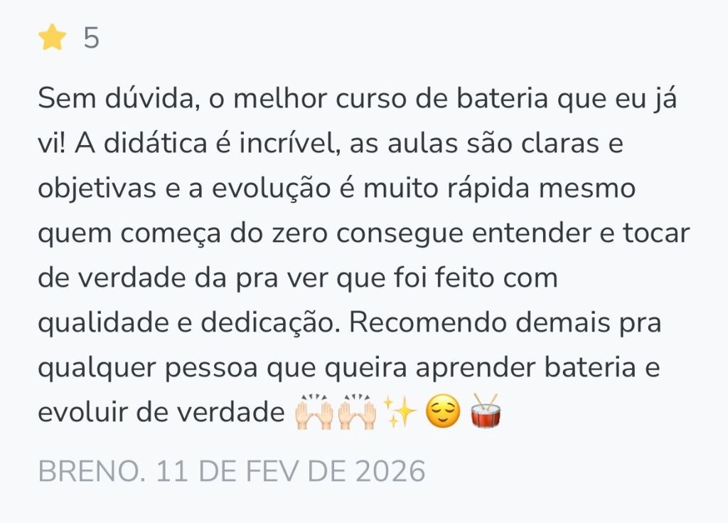 [OFERTA FEVEREIRO 2026] Agora você tem um professor de bateria pra tirar sua dúvidas 24 horas por dia durante os 7 dias da semana sem folga. O nosso agente de inteligência artificial é treinado exclusivamente com todos os conteúdos do Lapidando Bateristas 2.0 e também pelo professor Alan Rocha. É como se você tivesse falando diretamente com o professor a qualquer hora do dia e com todas as suas dúvidas sanadas no mesmo instante sem precisar esperar.