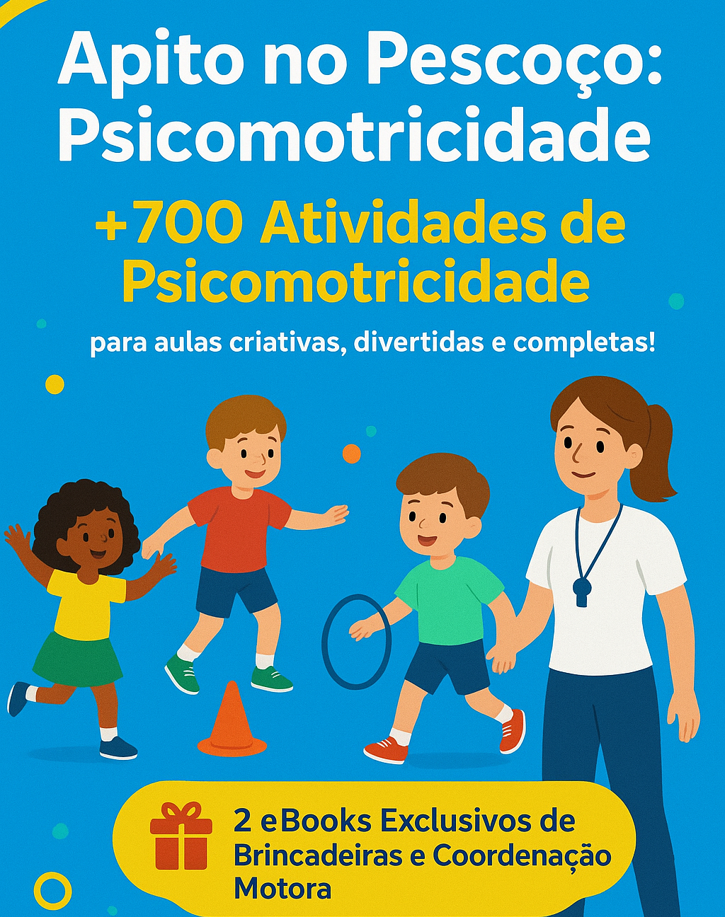 Com o "Apito no Pescoço: Psicomotricidade", você terá acesso a um material selecionado que vai transformar suas aulas e enriquecer o aprendizado de seus alunos com exercícios psicomotores dinâmicos e eficazes.