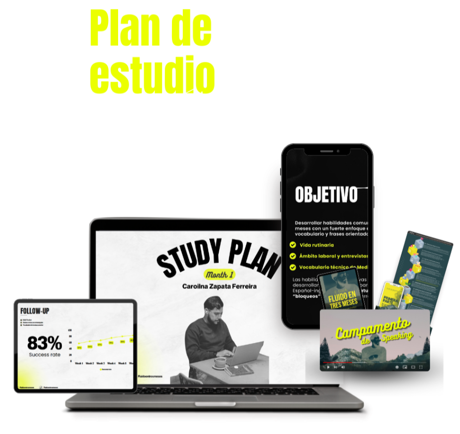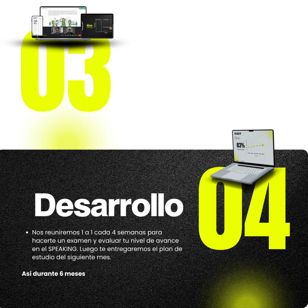 Deja todo el trabajo sobre nosotros, tu solo sigue el plan y mira como tu speaking se transforma.