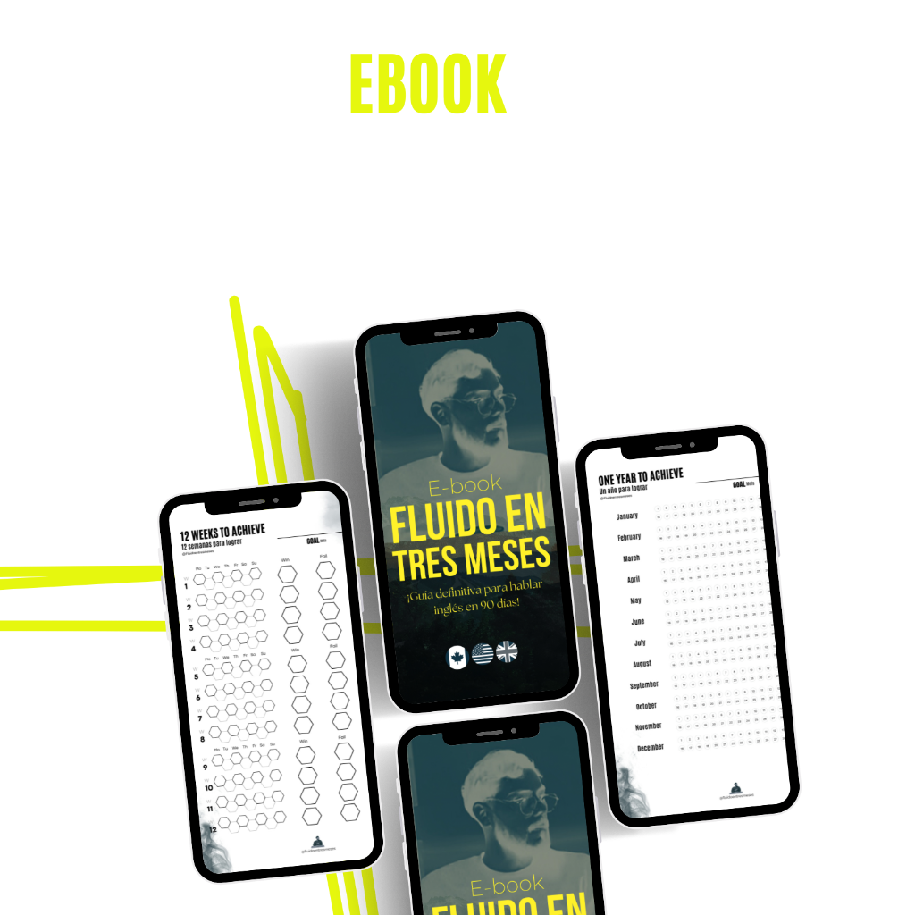 Con el acceso a la mentoría estarás recibiendo GRATIS el Ebook fluido en 3 meses junto con un habit tracker anual y un habit tracker trimestral. Que juntos son una guía para hablar inglés en 90 días.