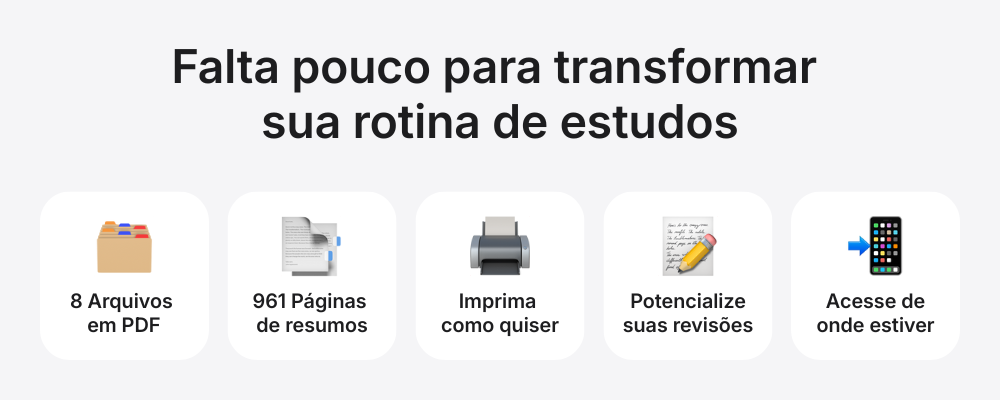 OFERTA VÁLIDA APENAS NO MOMENTO DESTA COMPRA! Adicione o Pack de Resumos – Ciclo Básico e revise os fundamentos essenciais da Medicina com muito mais clareza. Inclui resumos completos de Anatomia, Embriologia, Fisiologia, Histopatologia, Imunologia, Metabolismo, Neuroanatomia, Semiologia e SUS.