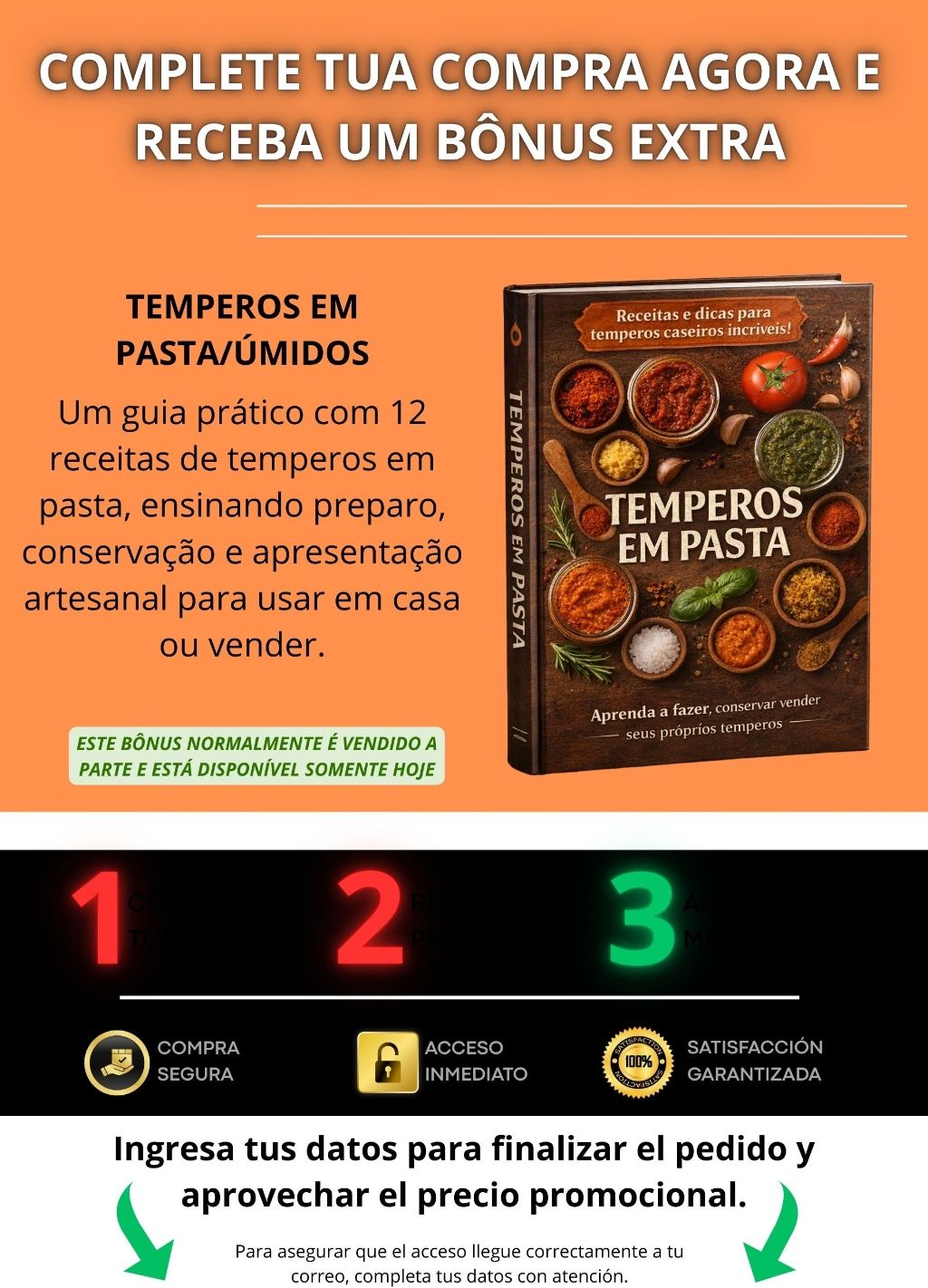 Aprende uma nova técnica avançada para preparar condimentos em formato de tableta, mais compactos, estáveis e fáceis de armazenar. Este método permite melhor conservação, menos humidade e maior praticidade no uso diário. É um conteúdo que não é vendido separadamente e normalmente está disponível apenas para alunas avançadas. 🟢 Clica em “Adicionar produto” para aproveitar esta oferta única.