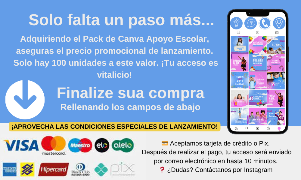 Adquiere ahora el paquete exclusivo de pies de foto listos para las publicaciones del Pack de Canva para Apoyo Escolar y lleva tu contenido al siguiente nivel. 📱💬📋