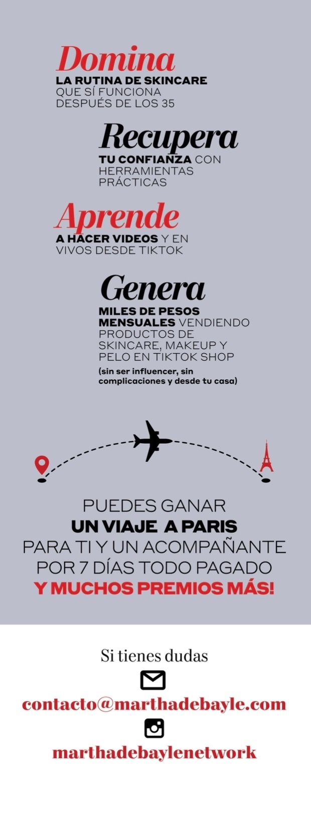 Si quieres verte espectacular, sentirte divina, empezar tu propio negocio e irte directo a facturar, este programa te da el método PROBADO para lograrlo. El único programa donde Martha Debayle te enseña belleza, disciplina y monetización digital en un sol